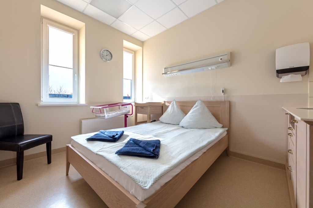 Po gimdymo šeimos gali užimti vieną iš kambarių, kuriuose yra atskira vonia, dvigulė lova, naujagimio vystymo stalelis. Veikia personalo iškvietimo sistema, bevielis internetas. Greta esančioje bendroje virtuvėlėje - valgomajame galima pasišildyti maistą, išsivirti karštų gėrimų. Artimieji už nustatytą mokestį gali užsisakyti vietos virtuvėje gaminamą šiltą maistą. Para šeimos kambaryje (IV aukšte) kainuoja 40 EUR/parai.